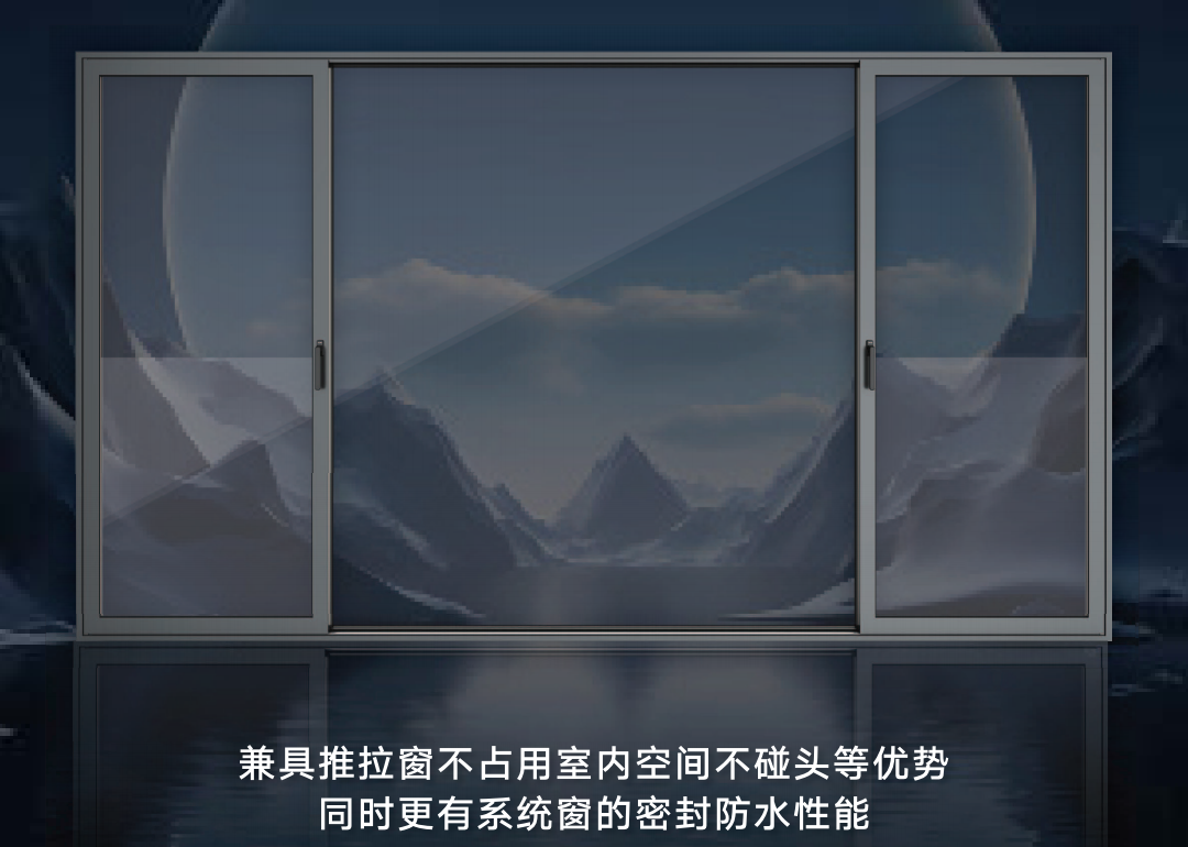 兼具推拉窗不占室内空间不碰头,同时更具有系统平开窗的密封防水性能。铝材采用6063-T5 表面处理工艺采用金属粉末,三元乙丙胶条,多腔体连体式隔热条。全套HOPO完美系统五金 抗风压 7级 水密性 4级 气密性 7级 保温性 6级 隔音性 35db